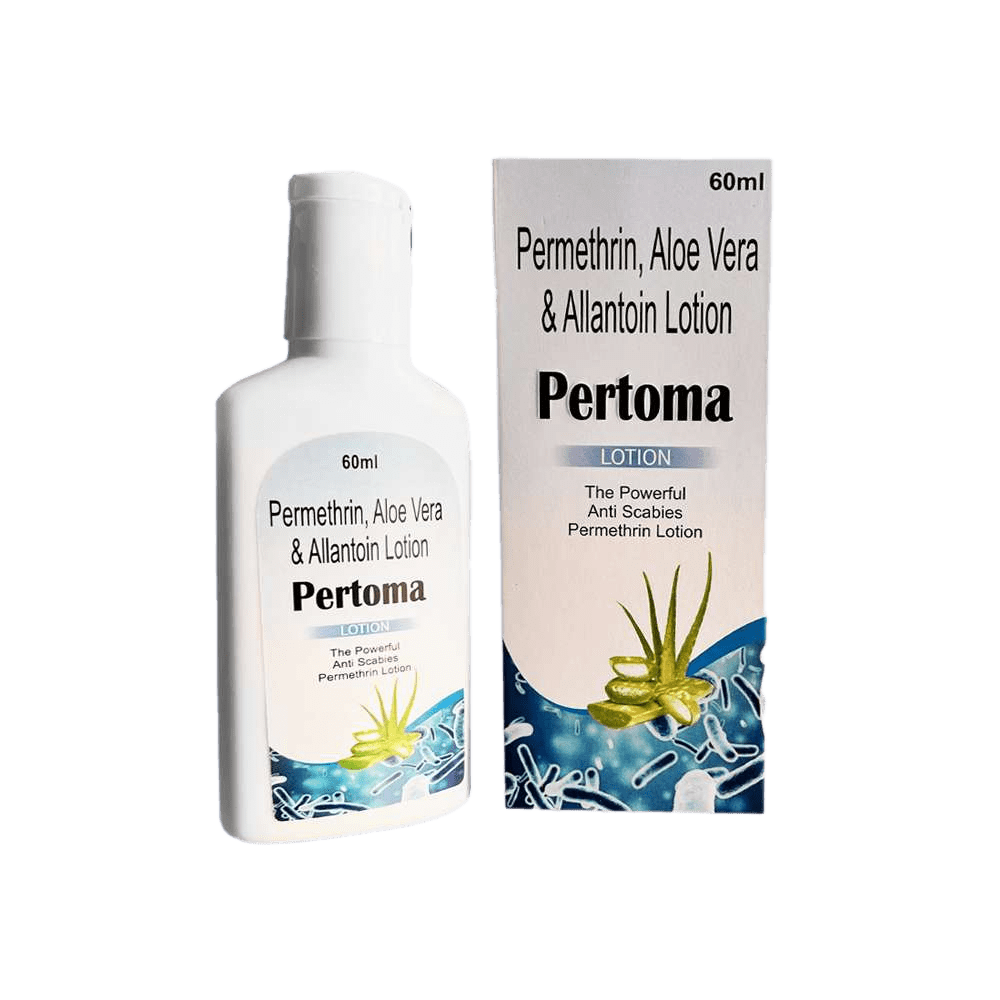 PERTOMA 5% Lotion is an antiparasitic medication. It is used to treat scabies, a condition where tiny insects infest and irritate your skin. This medicine works by killing the insects (mites) and their eggs.